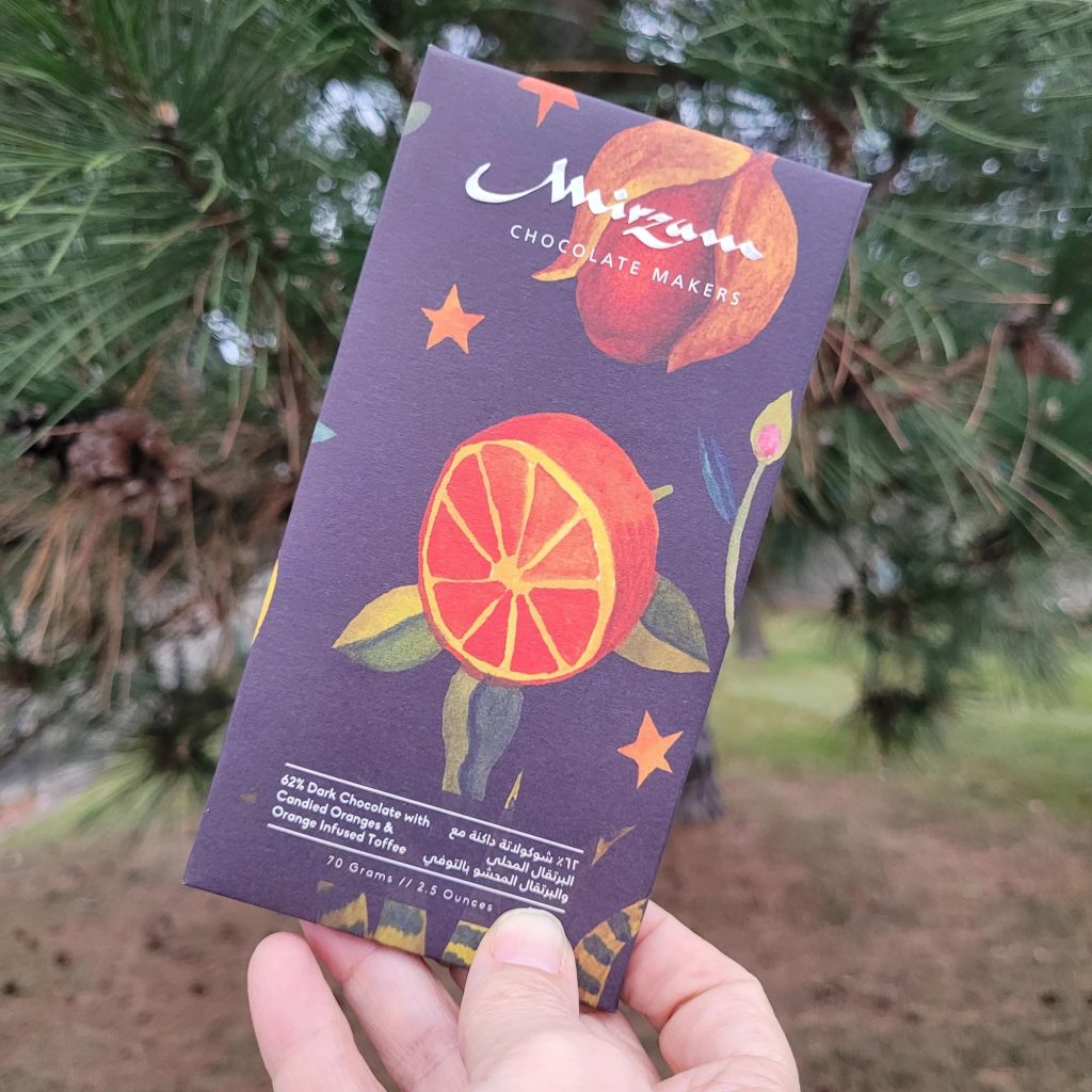 I’ll confess to being a bit concerned when we began buying chocolate bars from Mirzam in Dubai many years ago. I mean, chocolate made in a desert capital? Over the years, I came to realize though that I had nothing at all to be concerned about—the Mirzam chocolates have been uniformly excellent. In fact, they have become some of my favorites over the last five or six years! Each new arrival seems especially special, so good that I have a hard time imagining that Kathy Johnston and the rest of the Mirzam crew can top it. And yet, time after time, they do. This new Double Orange Dark Chocolate bar, which came to town for the first time a few weeks ago, is no exception. I’m already on my third one in three weeks!