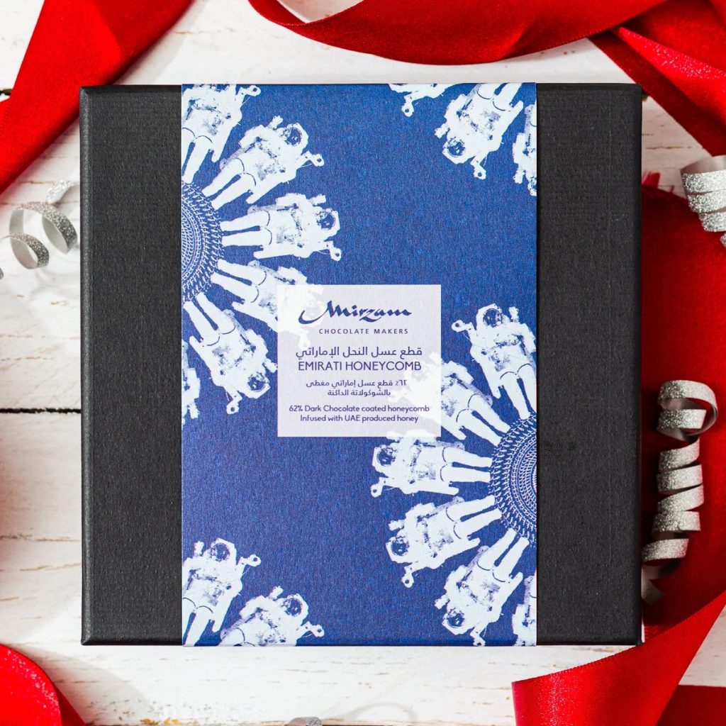 The beautiful box was designed by Saeed Al Madani, who hails from Abu Dhabi, a bit to the south of Dubai. His artwork draws on traditional Arabian art elements, combined with inspiration from the Emirates Mars Mission “Hope Probe.” The Emirati Honeycomb has a lovely, clean finish and a flavor that’s unlike anything else I’ve ever tasted. I’m still savoring it half an hour after I finished eating a small sliver! A great gift for the holidays and a lovely way to ring in 2026 on New Year’s Eve!