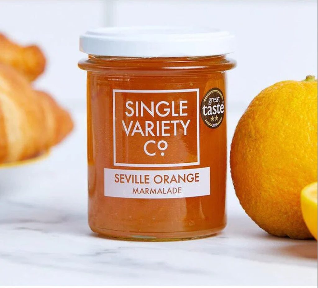 Next, spread on some orange marmalade. I’m a big fan of the newly arrived Single Variety Seville Orange Marmalade we have at the Candy Store. Handmade in very small batches by Nicola Elliot in the English city of Bristol, it’s aromatic and amazing. Her decade of artisan jam-making excellence shows in every spoonful.