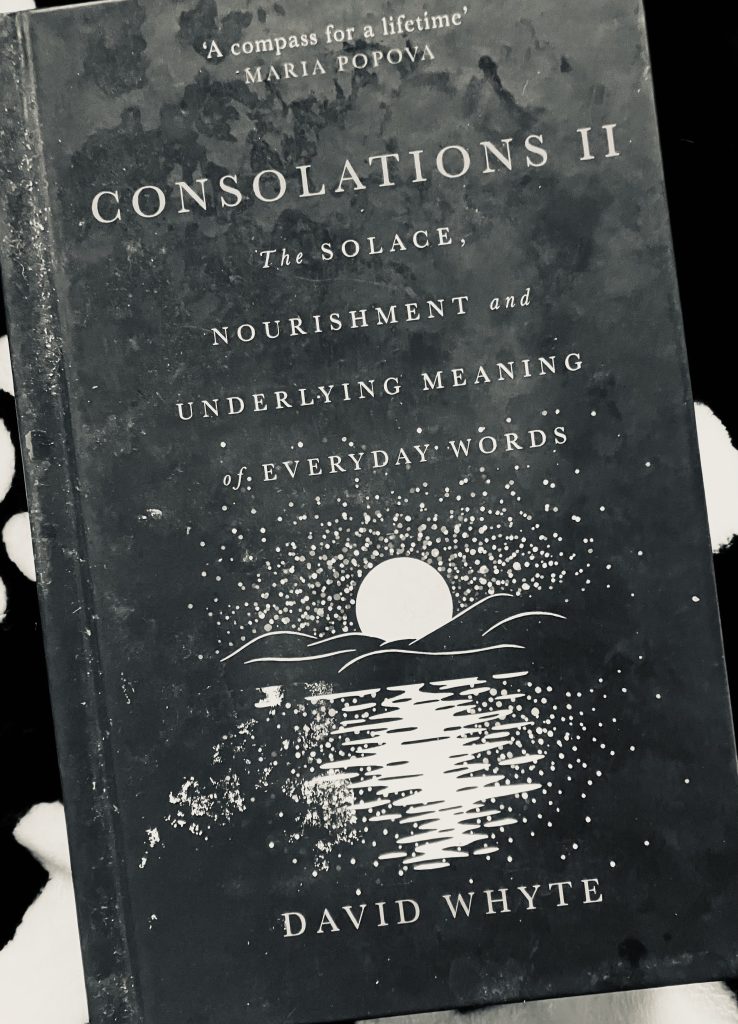 The gentleness of this whole concept feels like an invitation to those of us who are intrigued—to slow down, lean in, listen to our hearts, and let it settle. The last piece of my own understanding of the impact of the unordinary clicked only as I was finishing the final bits of this enews. It happened when I was literally looking through a different lens, starting to shoot photos of the cover of Whyte’s book for this essay. I’d had the title—Consolations II—ensconced in my head for weeks. But through the camera lens, it was the subtitle that suddenly caught my attention. Under Consolations II, in much smaller white-on-black letters, I really read the subtitle for the first time and let it sink in: “The Solace, Nourishment and Underlying Meaning of Everyday Words.” Sure enough, it struck me—solace, emotional nourishment, and slowing down to attend to everyday things is what “unordinary” is all about.