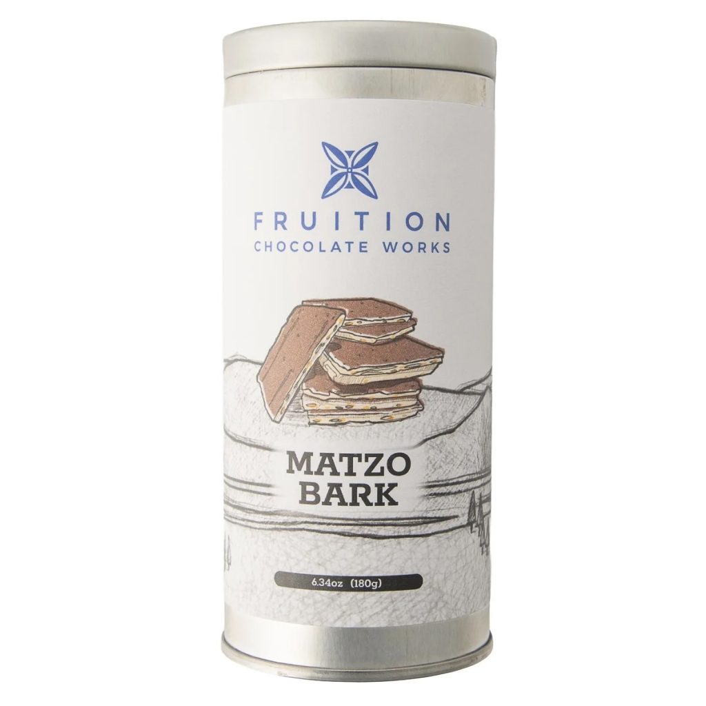 When I was a kid, chocolate-covered matzo would show up at our house on Passover now and again, but what we got back then was nowhere near as good as this great new offering we have from our friends at Fruition. Unlike the low-cost commercial chocolate we got as kids, this is 68% bean-to-bar dark chocolate. Small pieces of matzo are dipped into the chocolate and then tossed with toffee and candied orange. To take it even further, they add a small bit of fleur de sel.